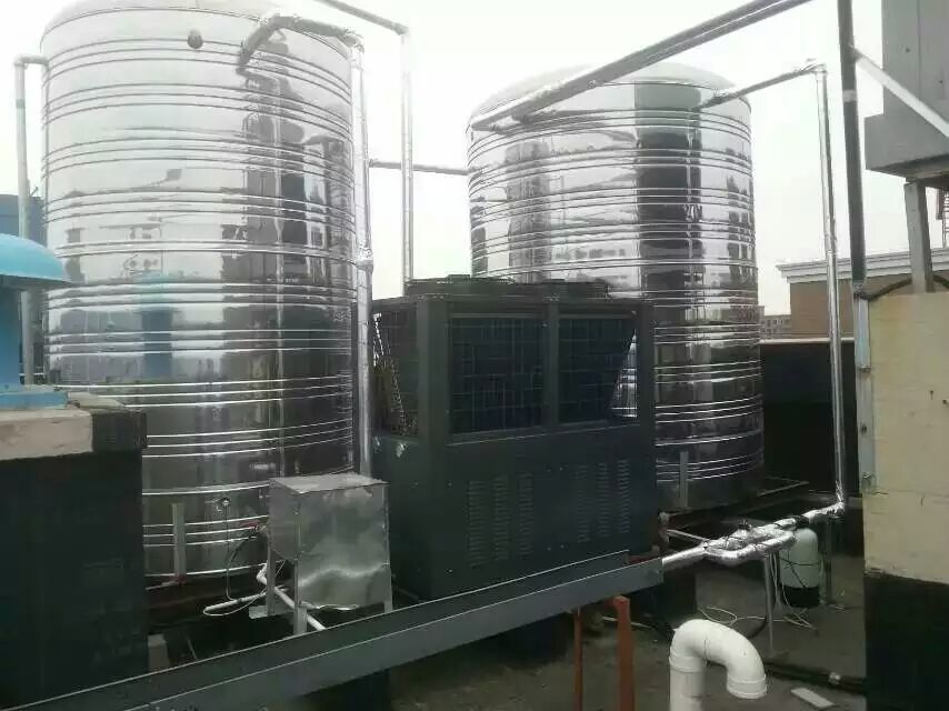 太阳能空气能热泵中央热水系统中,太阳能辅助加热空气能商用热水器在晴好天气作为太阳能集热系统的辅助热源设备,在太阳能资源不足时或阴雨天气作为系统的主要热源保证热水的正常供应,所以其制热功率应按照整个热水系统的设计热负荷进行确定。对于全日制中央热水系统,酒店商用热水器功率按照热水系统设计小时热负荷确定,对于非全日制中央热水系统,热泵机组的功率应根据最大用水量、热水箱容积、加热时间等参数进行确定。热泵机组的额定制热功率不小于中央热水系统的设计负荷,在冬季比较寒冷的地区,可适当加大机组的型号,使其尽量在一天中气温比较高的时段内运行,在较短的时间内满足系统的用热需求。