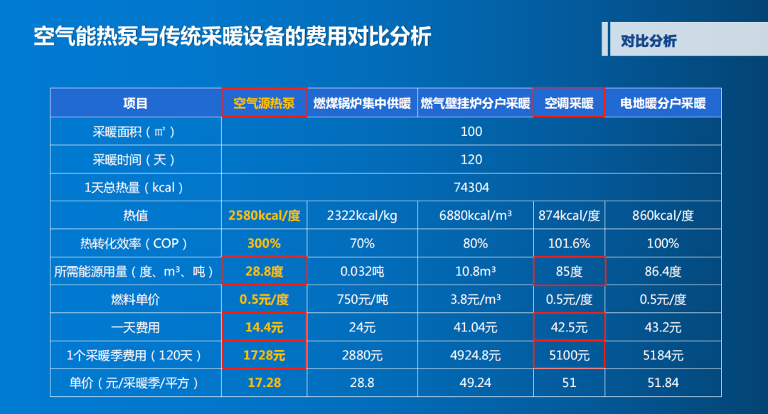 根据上表可知,在100㎡的房屋中,使用空调1天需要花费42.5元,按照0.5元一度电来算,4个月供暖期总费用高达5100元,而3044永利空气能1天费用仅需14.4元,4个月供暖期总费用仅1728元。因此,显然使用空气能更节能更省电。