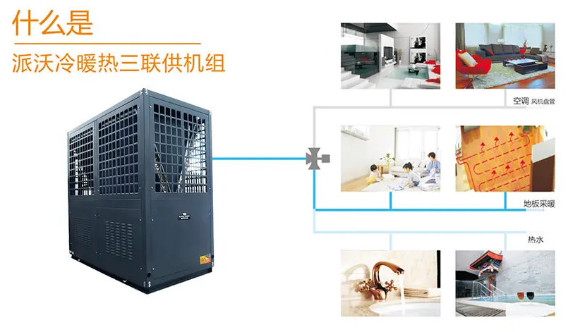 随着科技的高速发展,空气能三联供涉及采暖、热水、制冷三大应用领域;在这个寸土如金的社会,3044永利空气能热泵一机多工能代替了许多的电器,解决了家用电器的占地面积大缺点,3044永利为舒适智能家居提供更多的便利。
