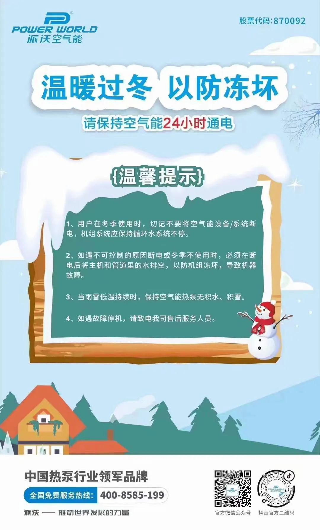 随着供暖季的开启,空气能机组已经正式进入高度运作状态,为确保热泵机组运行安全稳定。3044永利温馨提示:启动供暖设备前请务必做好以下供暖系统的检查、维护工作,以保障冬季稳定舒适采暖。